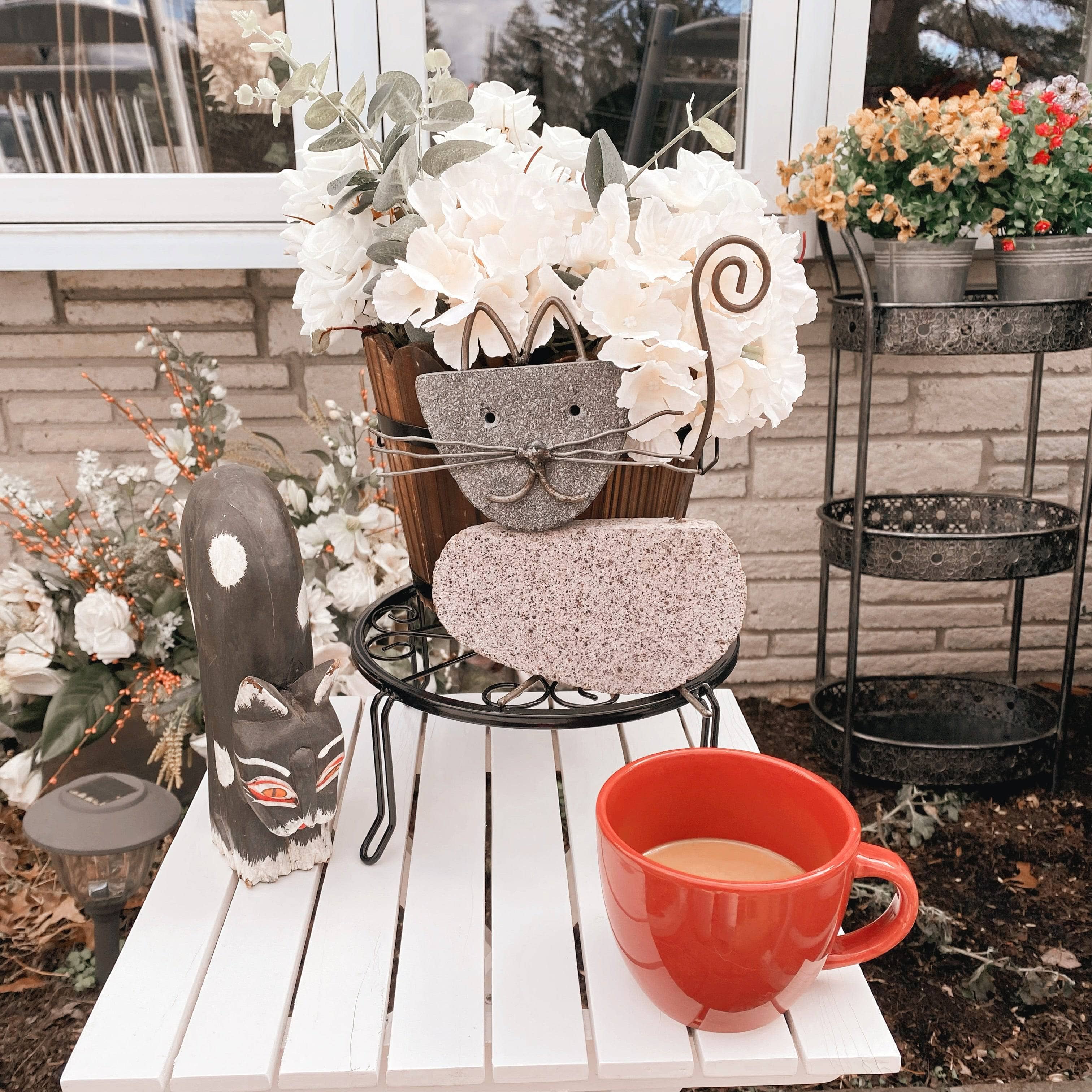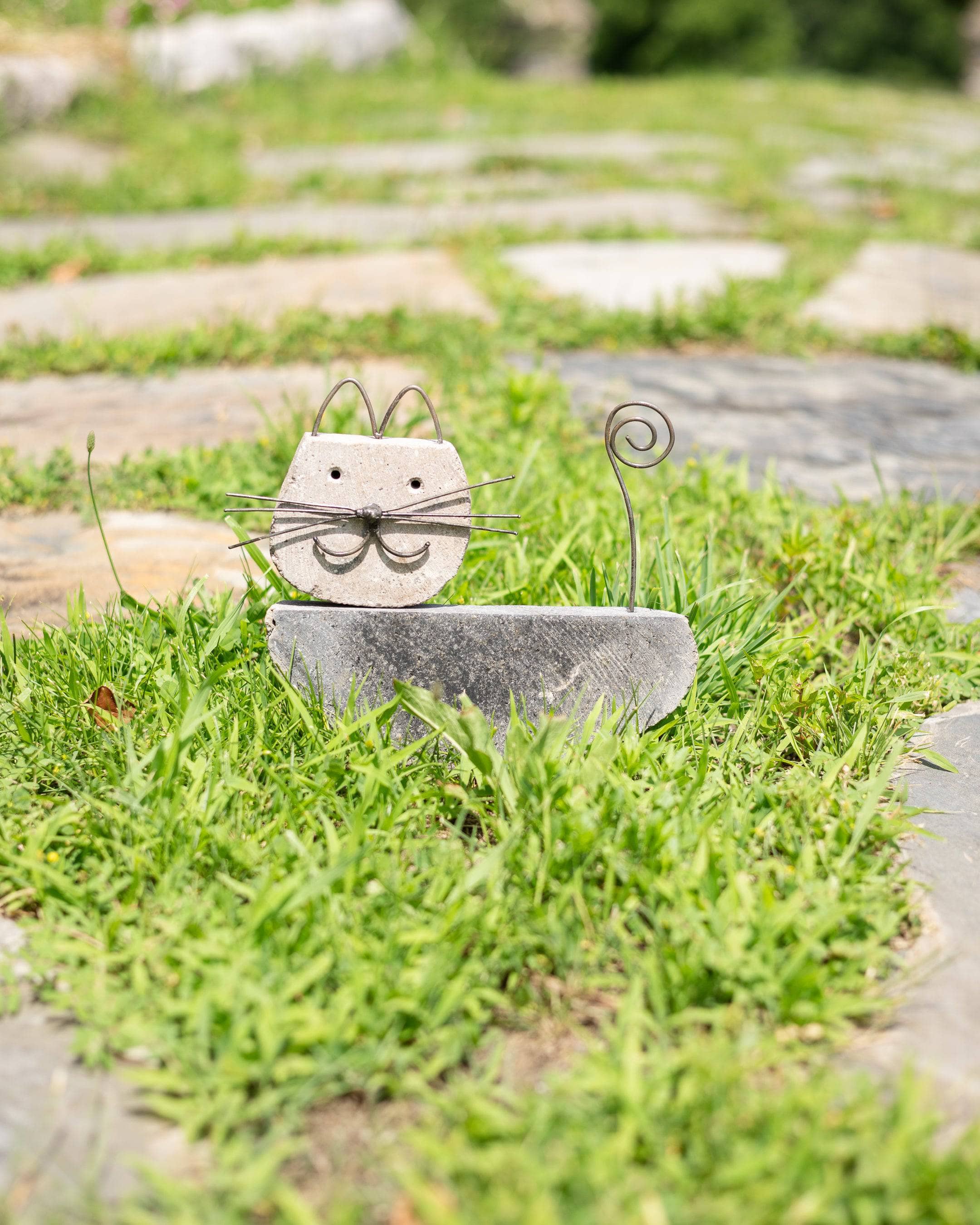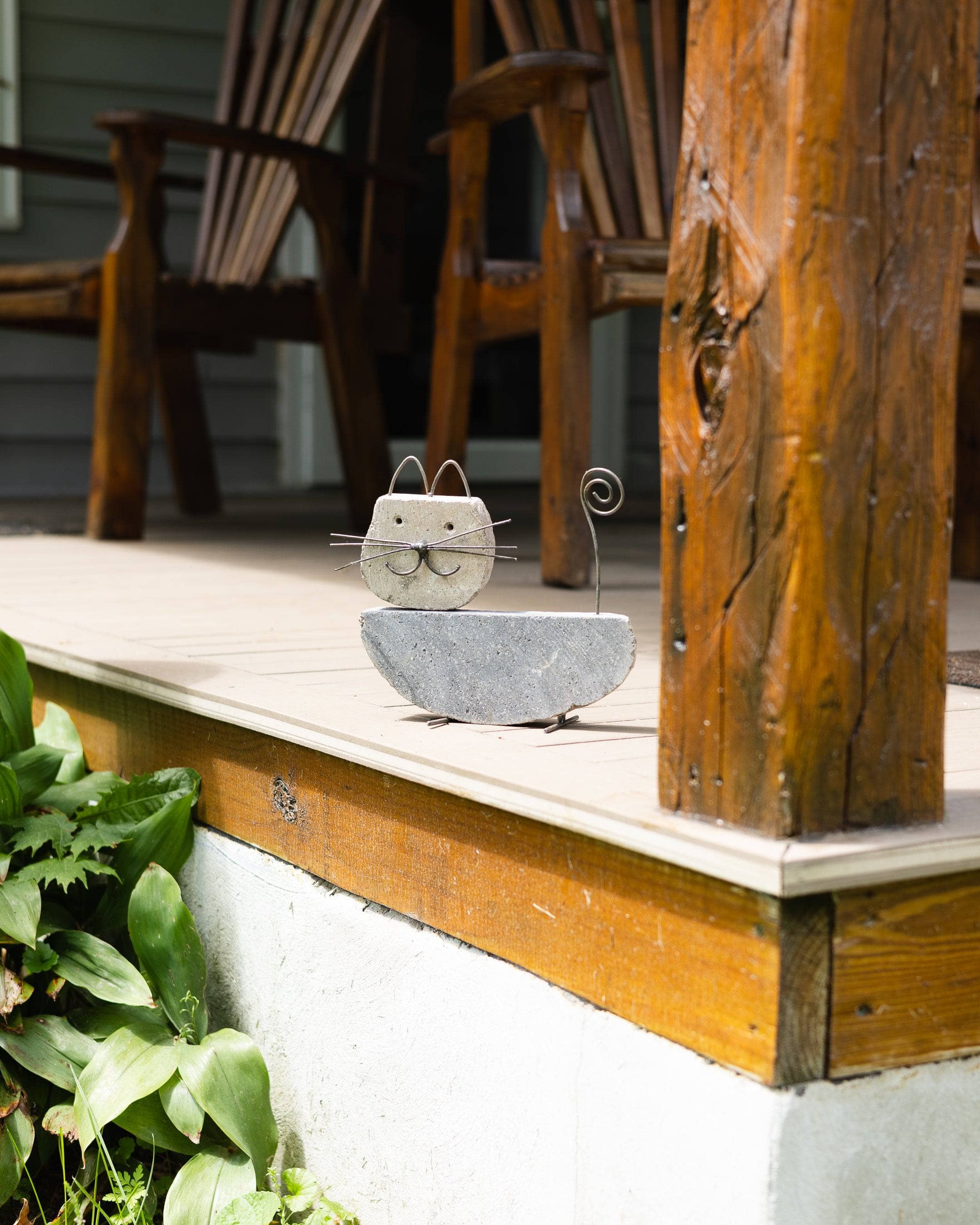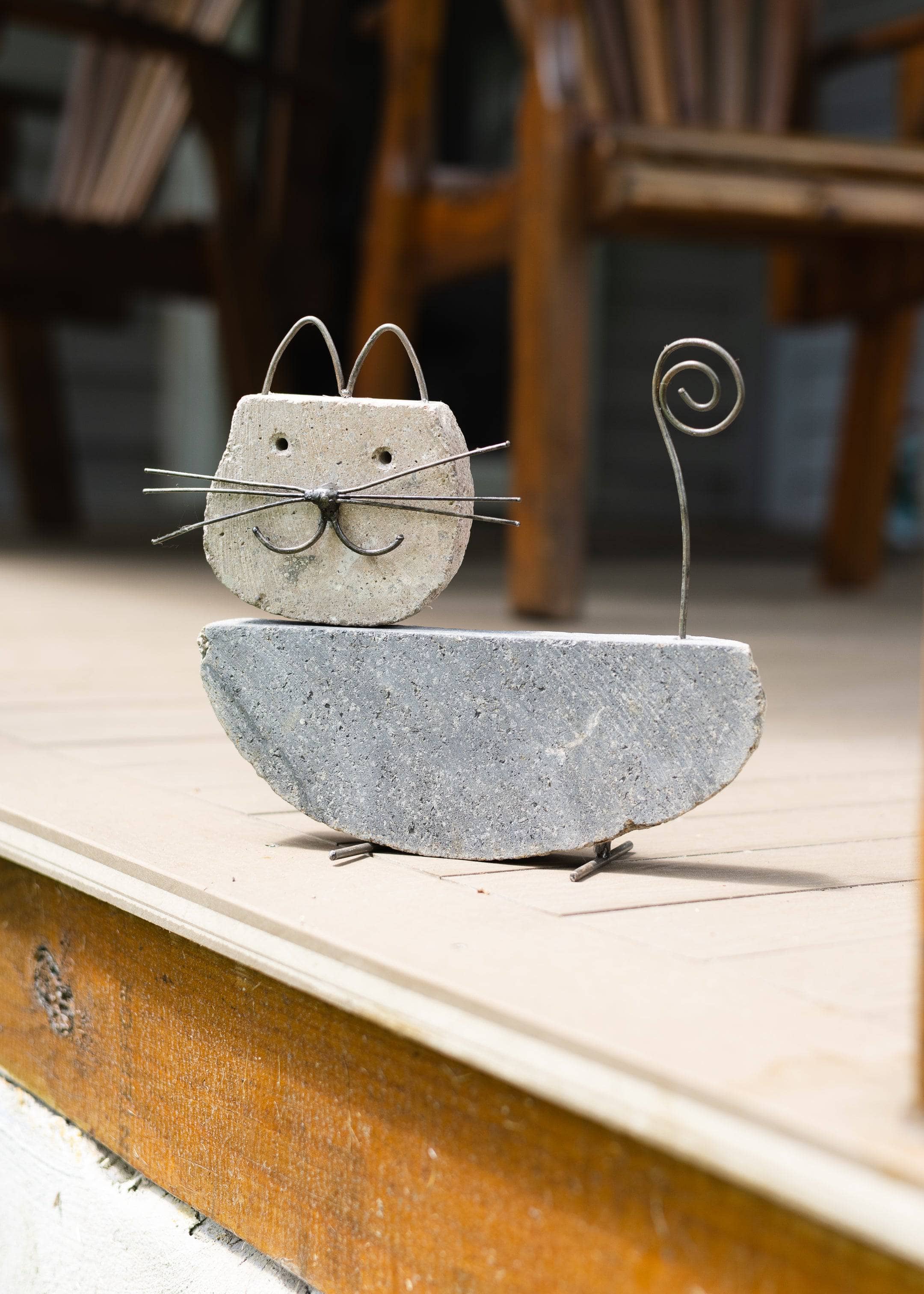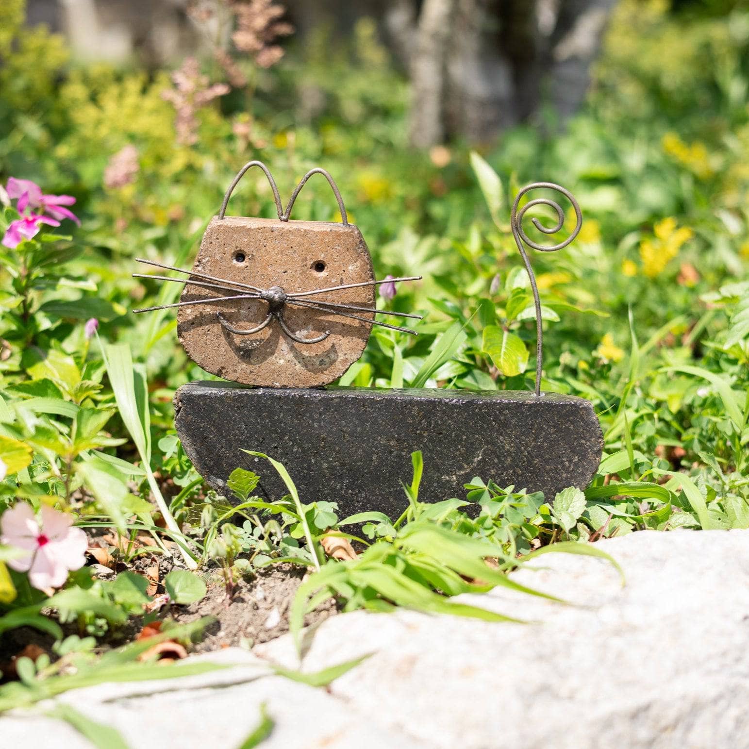 Love cats? Looking for a gift for a kitty lover? You’re in luck. Our beloved Cat River Stone Garden Statue is cute as can be. This feline sculpture is made with contrasting river stone slices and forged , readily bringing life (and meows!) to flower beds, gardens and lawns. Like all our statues, this Happy Gardens best seller has been individually handcrafted.