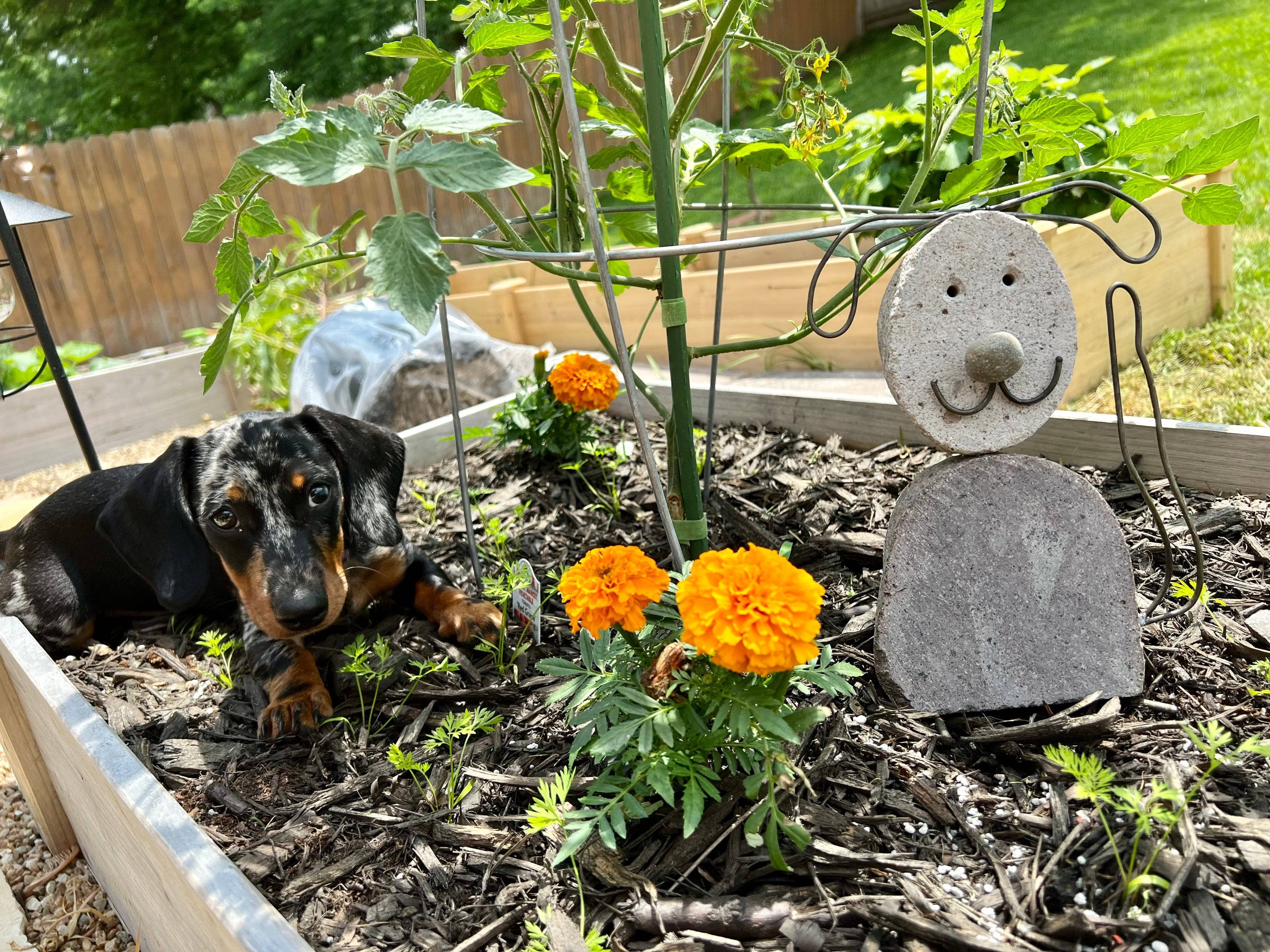 Dog lovers, unite! This adorable garden statue will help you pay homage to Fido while bringing a touch of whimsy to your garden, lawn or patio. Made with contrasting river stone slices and forged metal, the statue perfectly complements both flora and fauna.