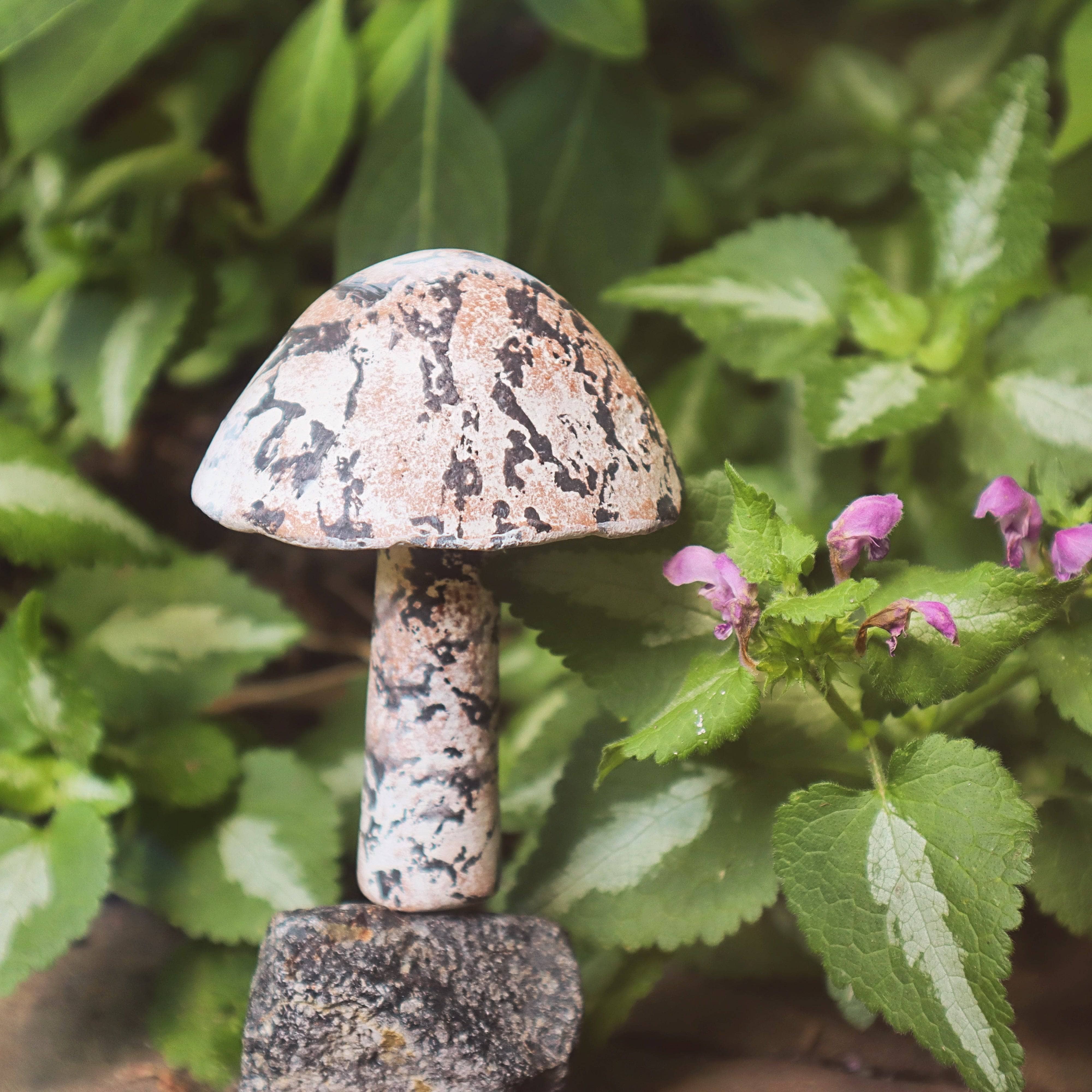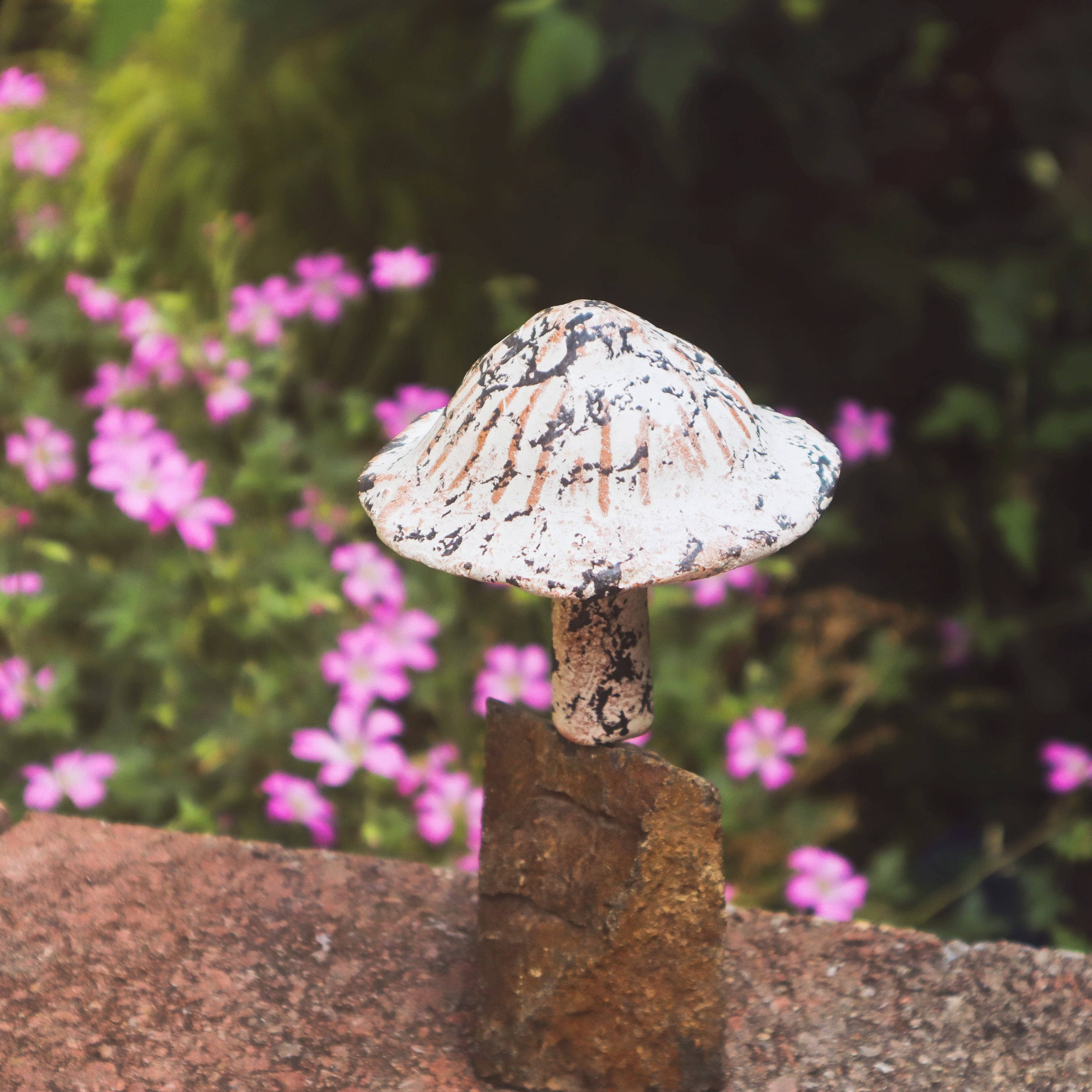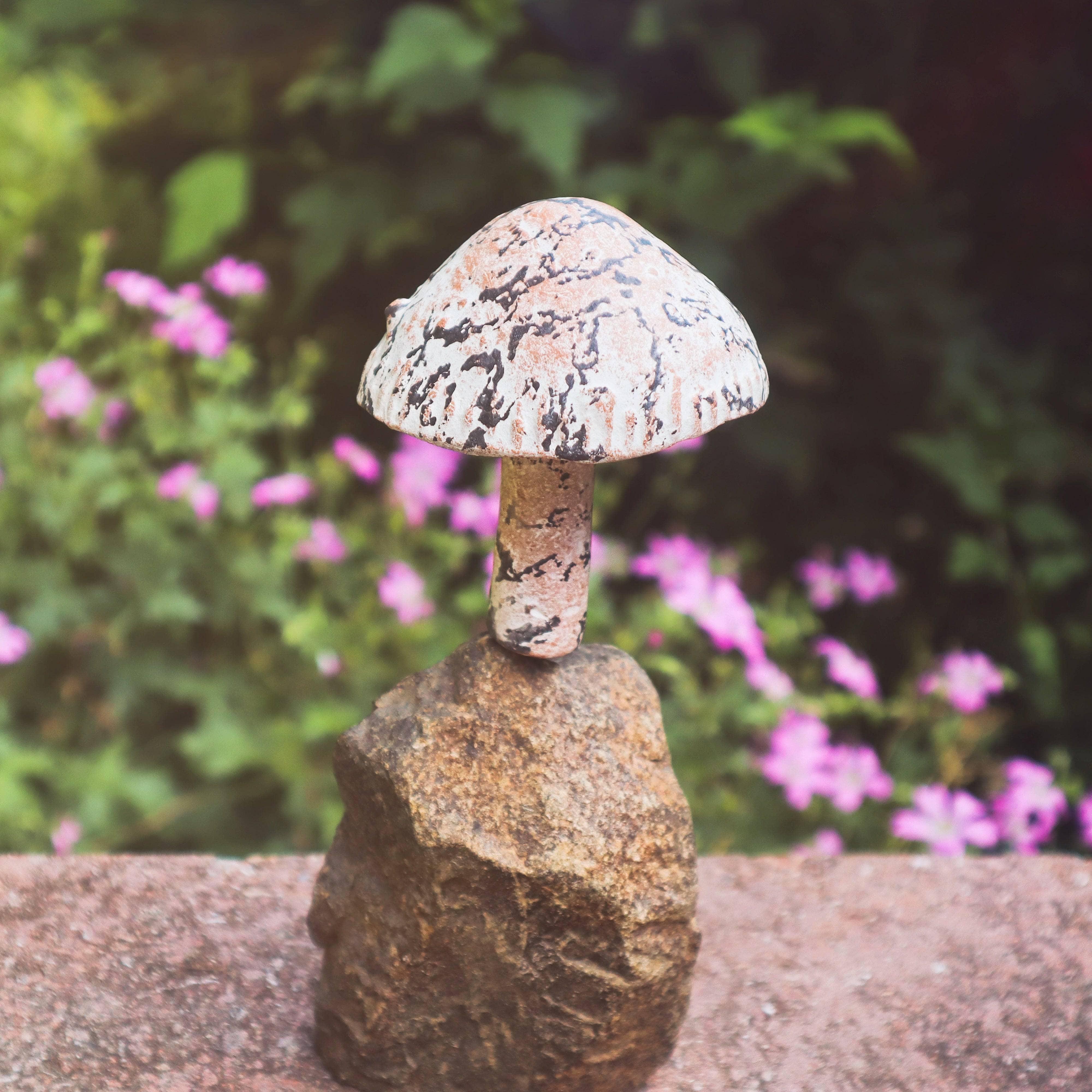 Natural colors and textures make our Little Fungi on Stone sculptures a marvelous addition to any flowerbed or rock garden. In varying heights and finishes, they look very much like the real thing! At once whimsical and beautiful, these little mushroom sculptures are fantastic on their own or alongside other pieces. Like all happy Gardens sculptures, these are handcrafted, and bring lasting beauty to your landscape.